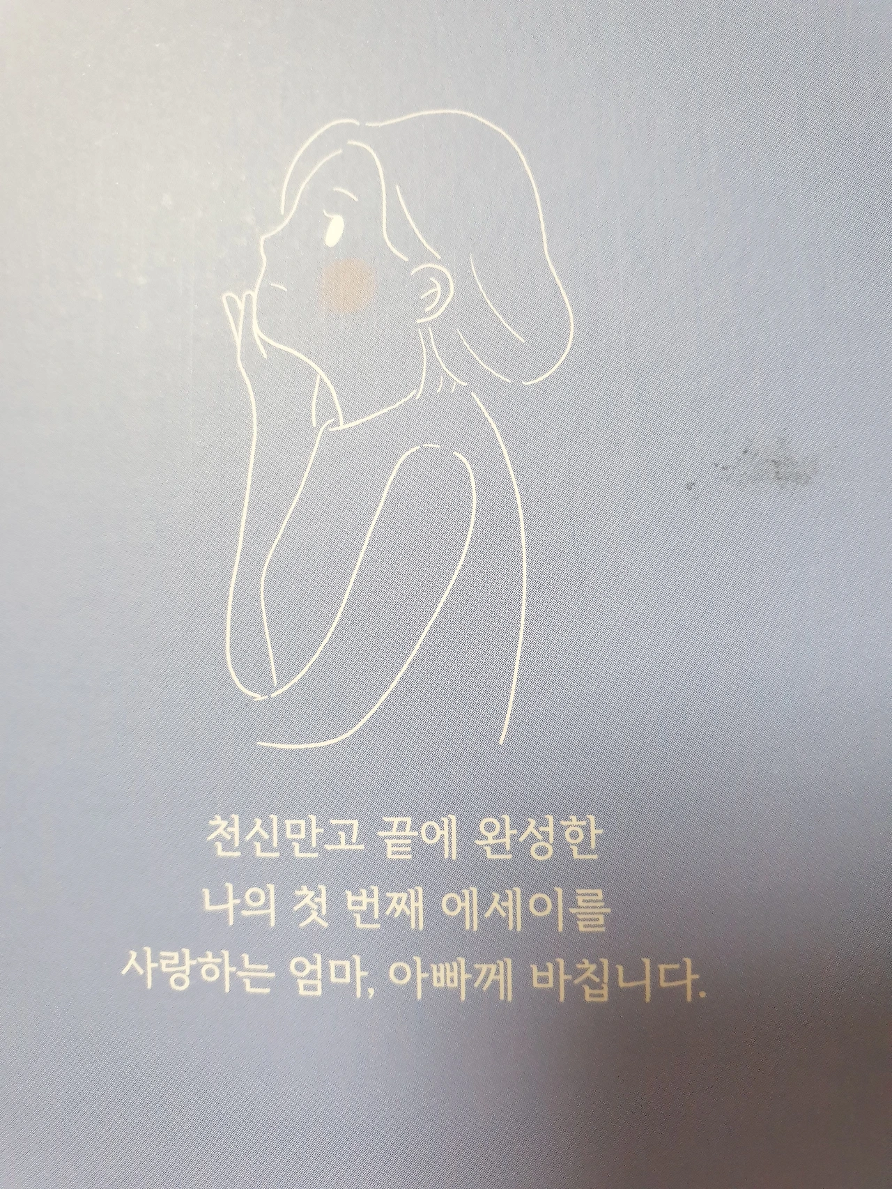 매번 책 얘기 중에 엄마 얘기가 절반이 넘는다기에 어떤 얘기를 썼나 걱정 반 궁금증반으로 상상만 하다 오늘 떨리는 마음으로 한 장 한 장 넘기면서 지난 일들이 주마등처럼 눈앞을 스친다. 엄마의 입장에서는 너무 사실적으로 적어서 걱정도 되지만 "엄마. 에세이는 진짜로 마음을 적어야 된다."라는 딸의 말이 생각나 흐르던 눈물을 훔쳤다.