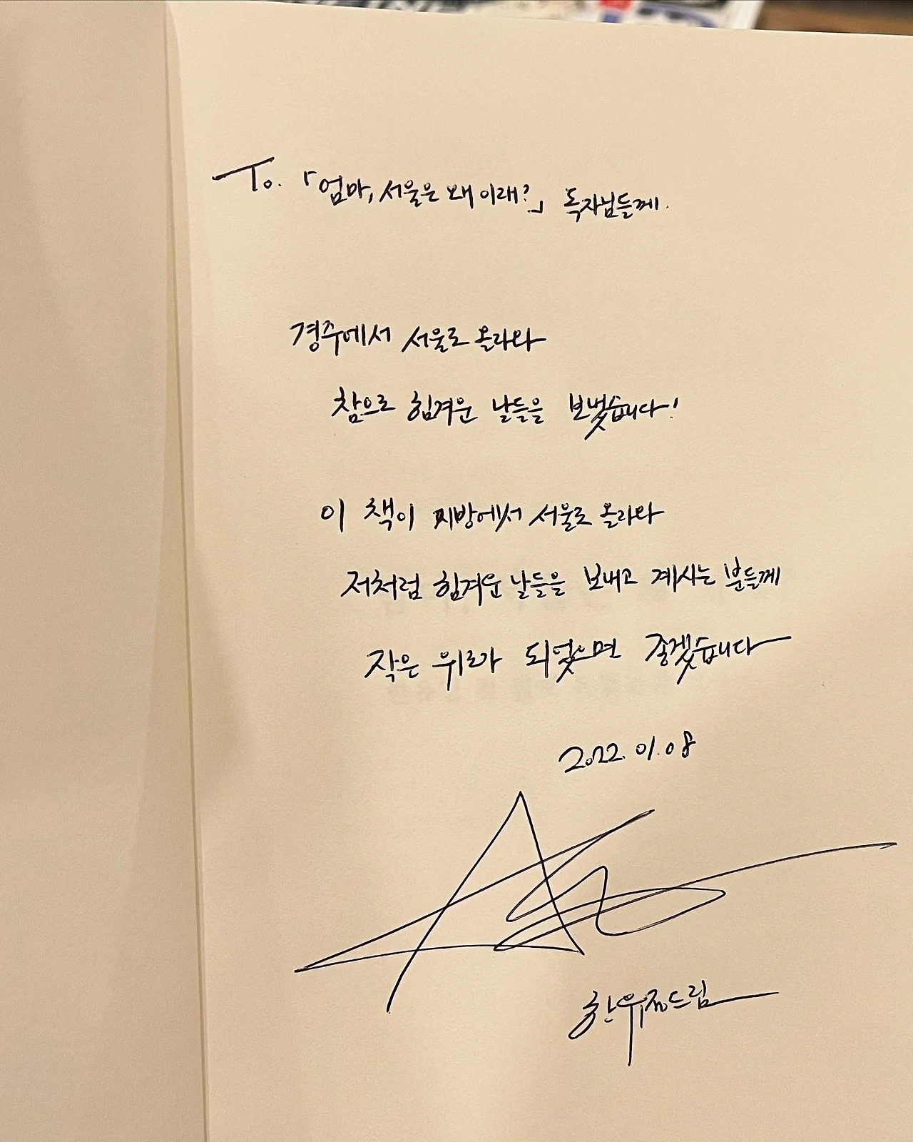 "정아. 이제 책 한번 내 봤으니, 그만 했으면 해. 내가 보기에는 너무 힘들다." 하니"엄마 내가 좋아서 하는데 뭐가 힘들어. 나는 재밌는데."하는 게 아닌가. 서점 여사장님은 본인 외갓집이 경주라며 신경주 역이 시내에서 멀더라며 반갑게 말을 건네주셔서 정말 인상 깊었다.