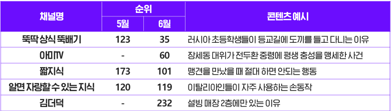 6월 : 인기 크리에이터 쇼츠 채널 조회수 급등, 지식/정보 쇼츠 채널 조회수 급등
