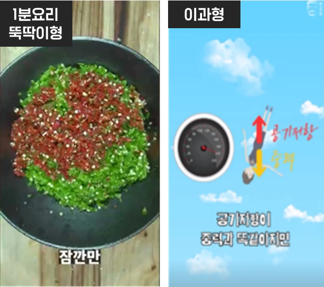 요리, 상식, 꿀팁 등 실생활에 유용한 정보를 핵심만 담아 소개하는 영상입니다. 요리 크리에이터 ‘1분요리 뚝딱이형’, ‘요리용디’, 소소하지만 유용한 생활 지식을 전달하는 ‘1분 미만’. ‘이과형’ ‘코코보라’ 등이 대표적이죠. 특히 ‘1분요리 뚝딱이형’은 전국 유명 식당의 음식 레시피나 집밥 요리 레시피를 어른과 어린이가 대화하는 형식으로 유머러스하게 설명해 큰 호응을 얻고 있습니다. ‘21년 6월 첫 영상 게재 이후 6개월 만에 구독자 80만 명을 돌파하여 초고속 성장했죠. ‘이과형’은 <10km 상공에서 떨어져도 살아 남는 방법!> 영상이 쇼츠 최초로 2주 만에 700만 뷰를 기록하며 인기를 끌기도 했습니다.