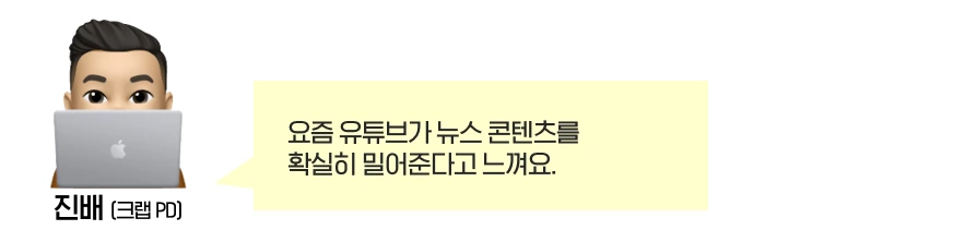 요즘 유튜브가 뉴스 콘텐츠를 확실히 밀어준다고 느껴요. 자극적이지 않아도 조회수 빵빵 터지는 영상이 많이 나와요. 이번 월드컵 때도 뉴미디어 뉴스 채널이 인기동영상 1위부터 상위권을 전부 먹어버렸거든요. 그런 걸 보면 다시 뉴스, 레거시 미디어가 돌아오는 거 같다는 생각이 들어요.
