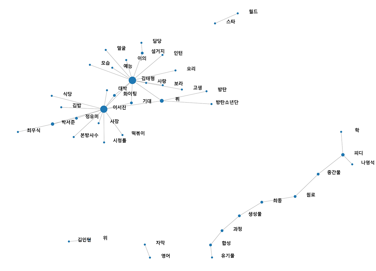 BTS 김태형과 이서진이 눈에 띄게 높은 언급량과 관계성을 형성했습니다.