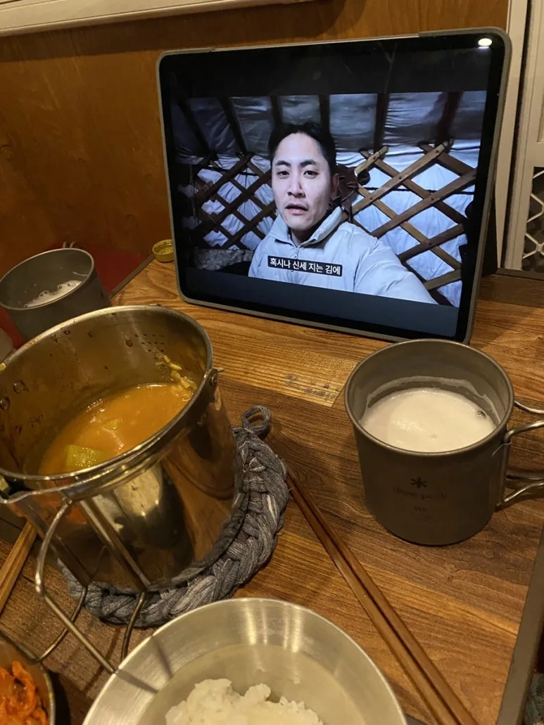 된찌와 함께 우리보다 조금 일찍 출발한 하퍼루트 유튜브 시청