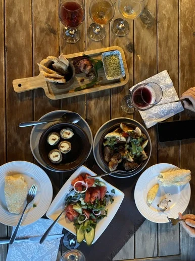 이곳 저곳 둘러보다 구글 평점이 괜찮은 와이너리 겸 레스토랑에 들어갔다. 운 좋게 테라스에 앉아서 멋진 전망을 즐길 수 있었다. 와인 시음 1세트와 저녁식사를 시켰다. 테이스팅 가격이 2만원이 넘는데 5종 와인 양이 생각보다 작고 크게 인상적인 맛은 아니었다. 음식 맛은 괜찮았다. 분위기를 즐기려면 추천.