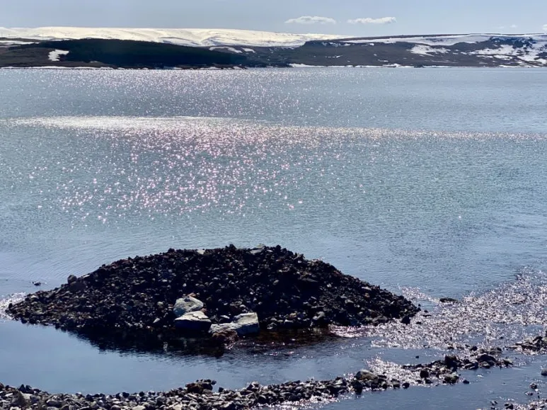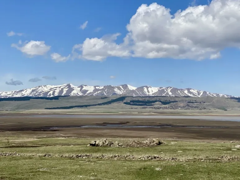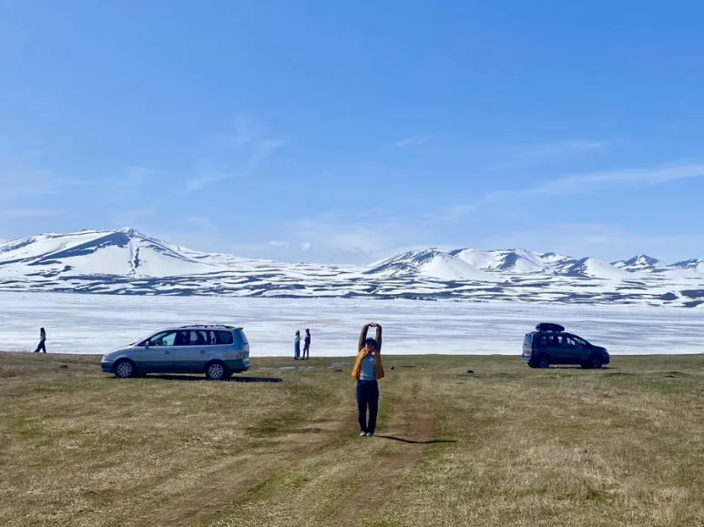 상념에 잠겨있는데 하나가 외쳤다. “창밖을 봐!” 겨울이 끝난줄 알았는데 어느덧 해발고도 2130미터에 이르자 산 정상에 호수가 나타났다.