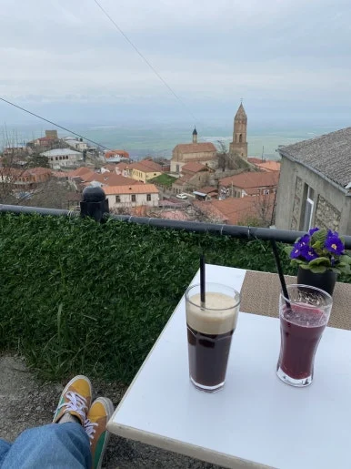 시그나기로 들어서는 길은 좁았다. 관광버스들을 피해 좁은 길을 운전해서 마을 안의 가장 큰 공터 주차장에 차박하러 들어왔다. 한 바퀴 돌아본다. 성벽 쪽을 향하다 성문을 들어서니 멋진 뷰가 눈에 들어왔다. 좋아진 기분에 야외에 앉아 커피 한잔했다.