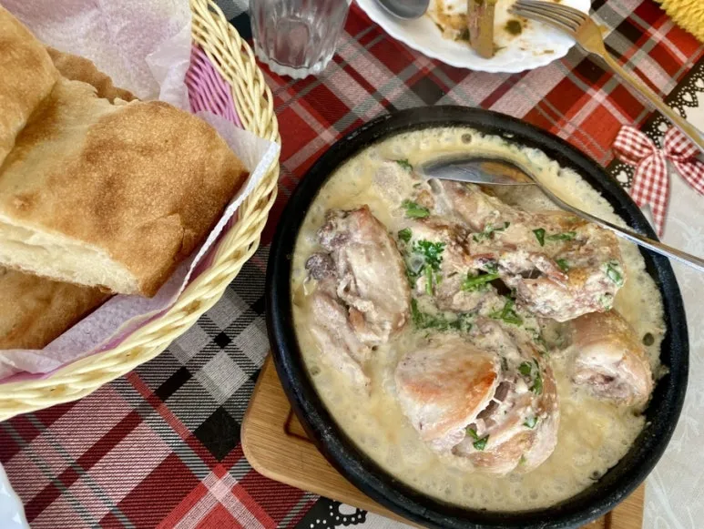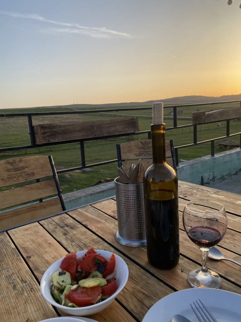 컬러풀듄을 둘러보고 점찍어둔 한적한 마을의 거의 유일한 식당으로 향했다. 그날따라 햇볕이 너무 좋아서 루프탑에 앉아 눈부시게 빛나는 조지아의 초원을 바라본 우리는… 꽤나 맛있는 조지아 음식과 시원한 낮맥에 한껏 기분이 들떴다. 누군가 조지아에서는 홈메이드 레모네이드를 주문해보라고 했기에 주저없이 시켰다. 진정한 레몬 착즙의 맛이었다. ㅎㅎㅎ