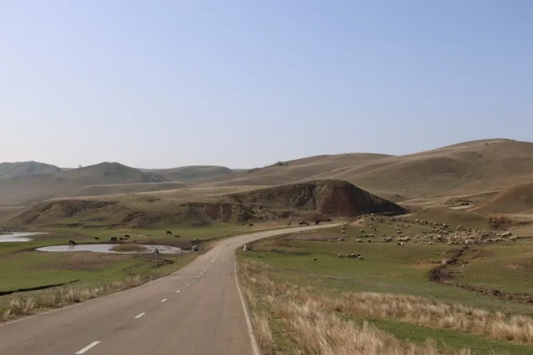 레스토랑이 제공한 목초지의 캠핑장에서 꿀잠을 자고 일어나니 돼지가 우리 집 앞에서 풀을 뜯고 있었다. 조지아를 여행하면 소, 양, 돼지,개를 원없이 만난다. 아쉽지만 이 곳을 뒤로 하고 바르지아로 향했다. 바르지아는 하나의 친구가 추천한 곳이아. 바르지아로 가는 길은 매우 높고 험했지만 잊지 못할 만큼 아름다웠다.