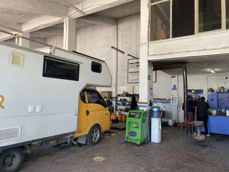고장난 자동차 에어컨을 고치러 왔다. 튀르키예에 들어오니 포터와 같은 H-100 차종이 많이 돌아다니길래 희망을 품고 괴레메 가는 길에 있는 ‘시바스’라는 도시의 현대차 서비스센터에 방문했다. 사람들은 매우 친절했고(튀르키예사람들은 지금까지 밝고 부드럽다) 우리 에어컨 콤프레셔 부품이 있는지 알아보기 시작했다. 결국 차량 높이가 센터에 입고되기 어렵고 부품 수급 사정상 재생품으로 일반 정비소에서 정비받기로 하고 이들과 함께 소개 받은 정비소로 갔다.
