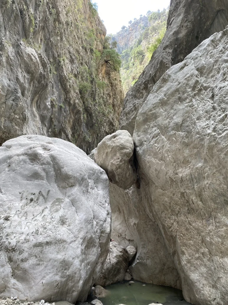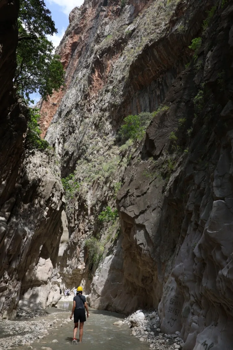 다음날 아침 우리는 협곡으로 갔다. 이곳은 위험해서 안전모를 쓰고 들어가야 한다. 입장료는 별로 안 비싸서 얼만지 기억이 안난다. 처음에는 나무 데크를 타고 멋진 풍경을 감상하며 한동안 걷는다. 그 다음부터는 불어나는 계곡 물에 발을 다 적셔야 한다.