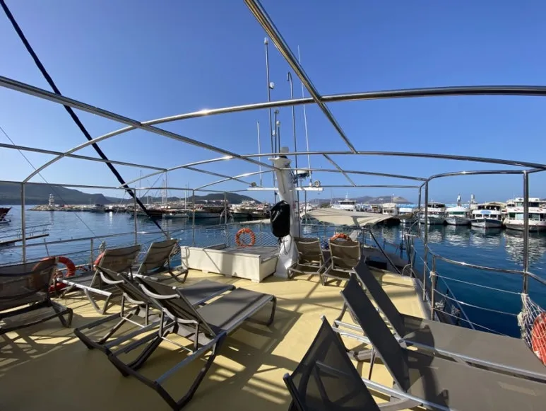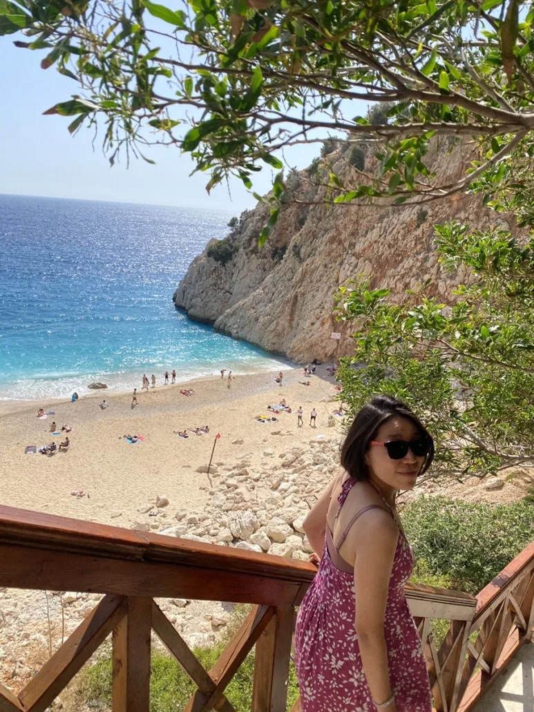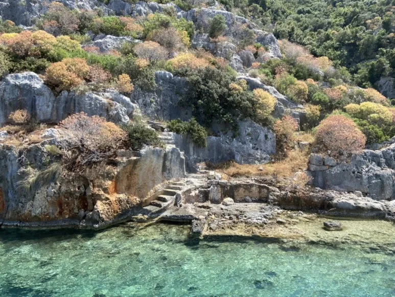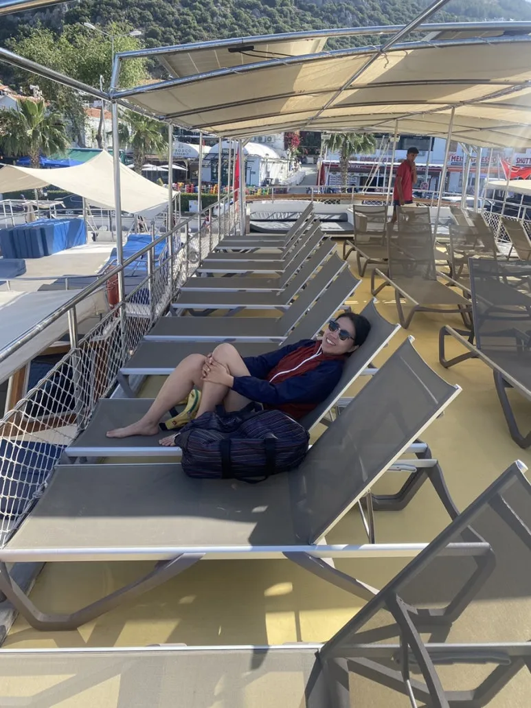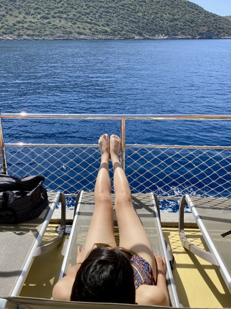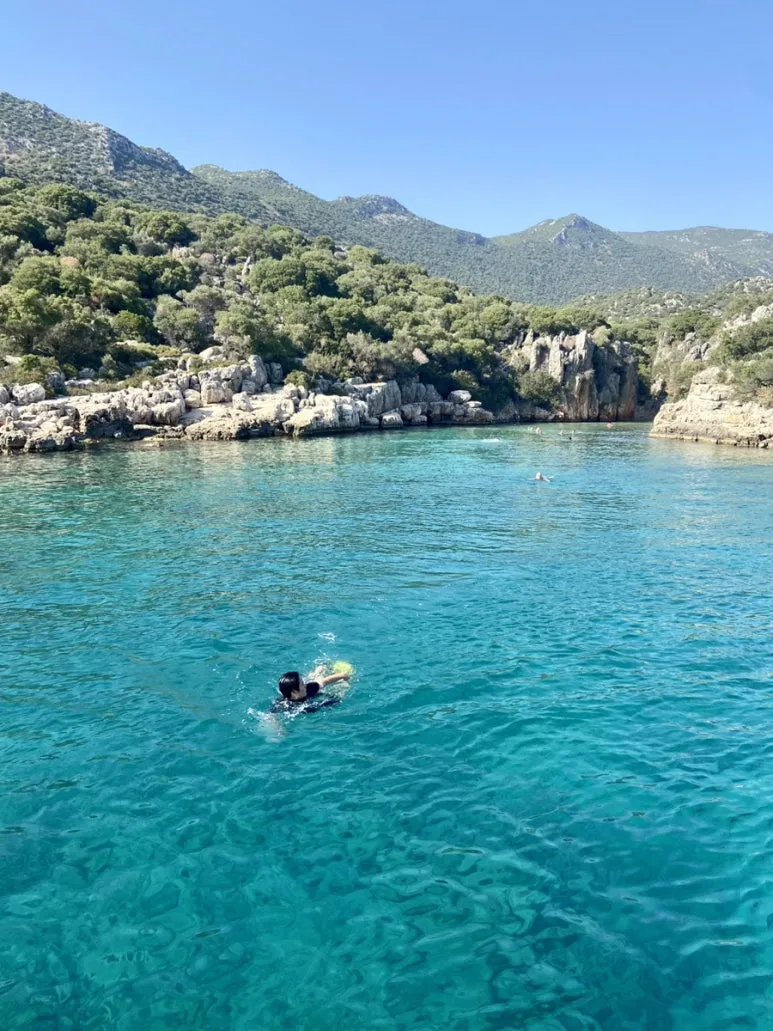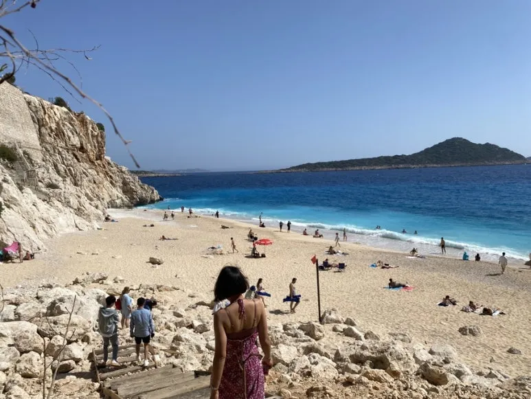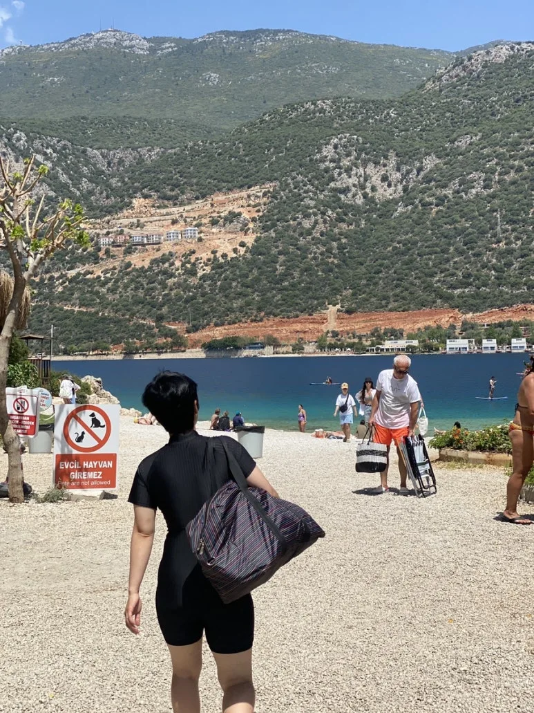 선베드를 하나씩 차지하고 지중해 바다를 보고 있자니 정말 여행을 왔구나 하는 실감이 났다. 수영을 하러 갈 때는 마치 수영장 내려가듯이 바로 바다로 이어지는 계단을 타고 내려가면 된다. 카쉬의 바다는 정말 잔잔해서 아름답고 거대한 수영장에서 수영을 하는 듯도 했다.