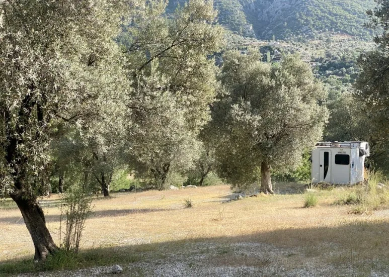 하루에 이천원만 주면 머물 수 있는 주차장으로 찾아갔다. 친절한 주인장은 우리를 저쪽 올리브 숲으로 들어가면 아무데나 주차 하면 된다고 안내 해줬다. 어영부영 들어가 본 올리브숲은 정말 감탄이 나왔다. 뒤로는 산이 보이고 한국에서는 볼 수 없는 신비한 색깔의 올리브 나무가 거대한 숲을 이루고 그 사이 사이는 잔디밭과 다양한 지중해 식물들로 가득 했다,