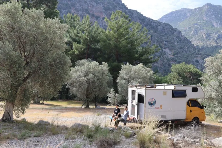다시 길을 떠난다. 오늘의 목적지는 산 깊은 사클리켄트 협곡이다. 이 협곡은 카쉬에서 만난 게이커플이 추천해 주었다. 한 명은 터키인이기때문에 터키 곳곳에 여행지를 잘 알고 있다. 흙먼지 이는 시골 길로 들어서자 강이 흐르고 산이 솟아있다. 우리는 파크포나잇을 뒤져서 적당한 차박지를 검색 했다.