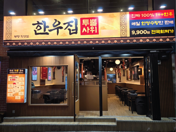 최근에는 ‘9,900원 한우집’이 또 한 번 화제가 됐다. 한우 꽃등심 100g, 그것도 투쁠 한우를 9,900원이라는 파격적인 가격에 내놓으면서 가맹점이 급속도로 늘었다. 유행을 따라 비슷한 상호명으로 나온 카피 가게들까지 우후죽순 생겨났지만, 이제는 성장세가 멈추고 정체기에 접어든 모습이다.