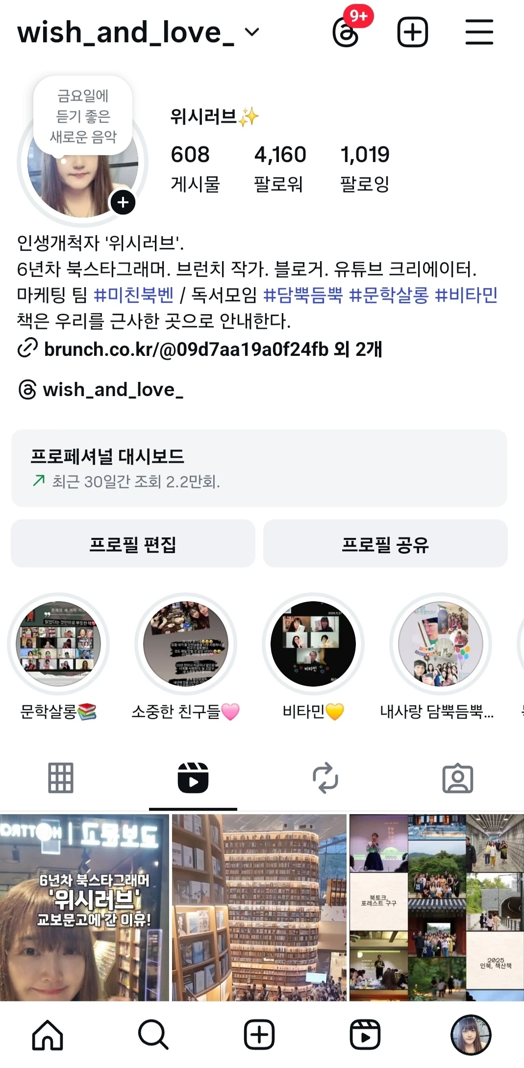 '위시러브'라는 이름으로 인스타그램에서 북스타그래머로 활동해 온 지가.