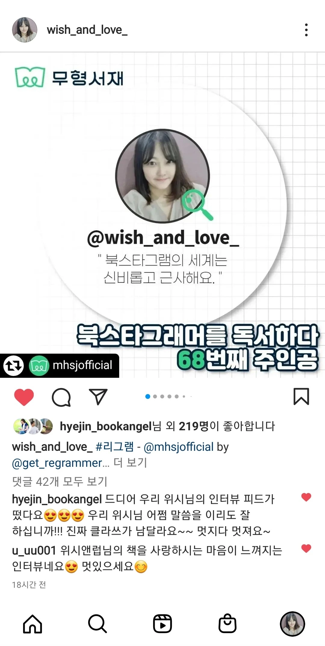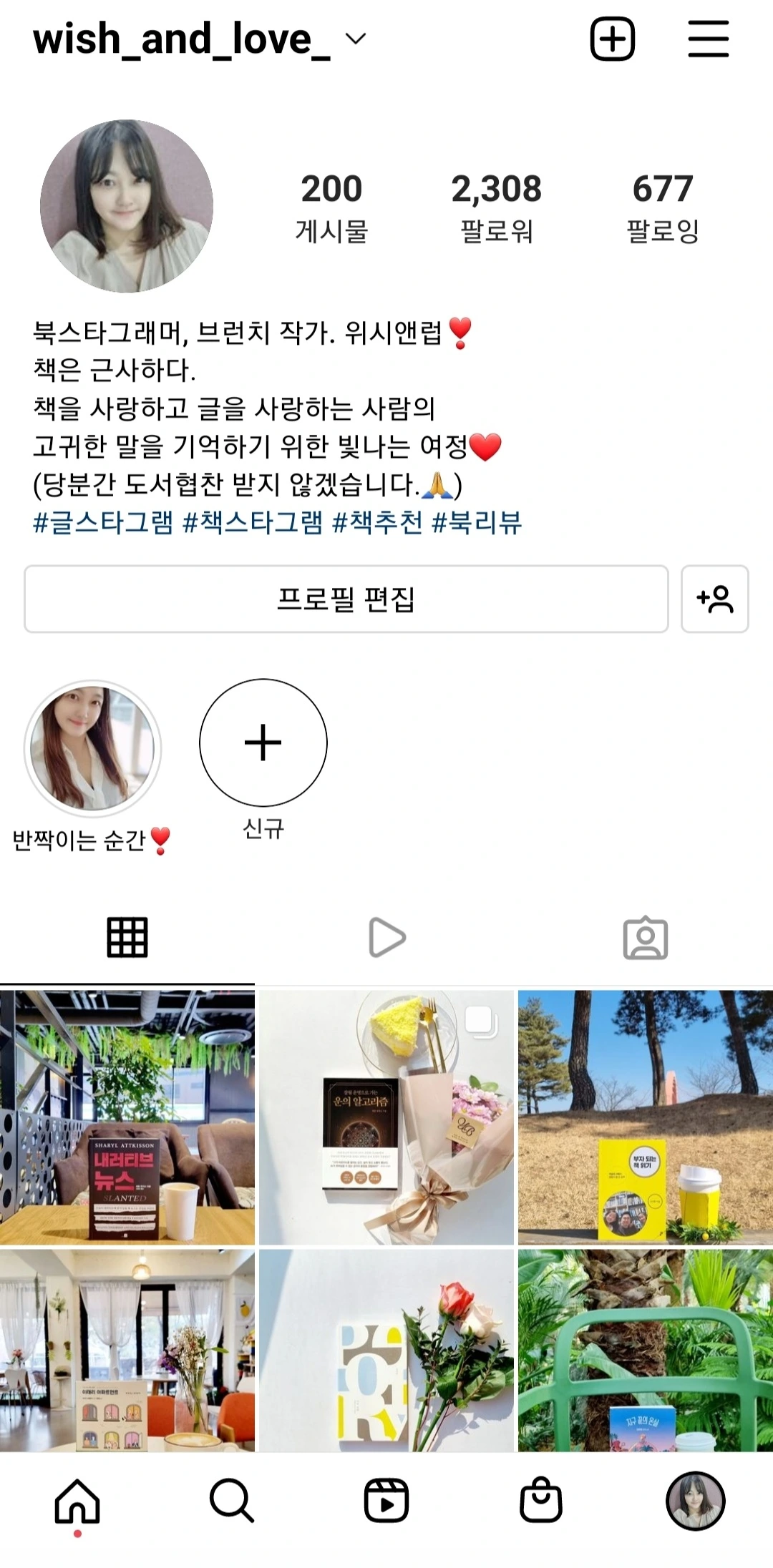 인친님들의 위로와 응원, 칭찬과 인정 등 감사하고 따뜻한 소통 등. 북스타그램을 하면서 내 얼굴에 미소가 수시로 번지는 걸 느꼈다.