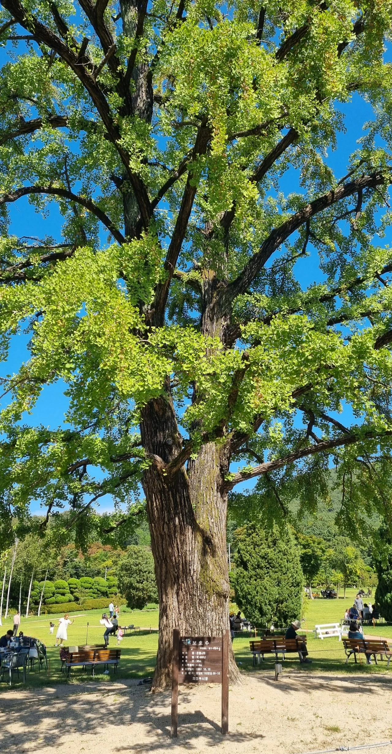 다음 날. 그녀는 야외 정원이 있는 대형 카페를 찾아갔다. 의정부에 위치한 이 카페는 곳곳이 가을 분위기를 자아내고 있었다. 그곳에서 수령이 약 440년 된 우람한 은행나무를 만난다. 위엄에 찬 모습이 가히 장관이다. 그에게 묻는다. 어떻게 그렇게 잘 버틸 수 있냐고. 어떻게 그렇게 강할 수 있냐고.