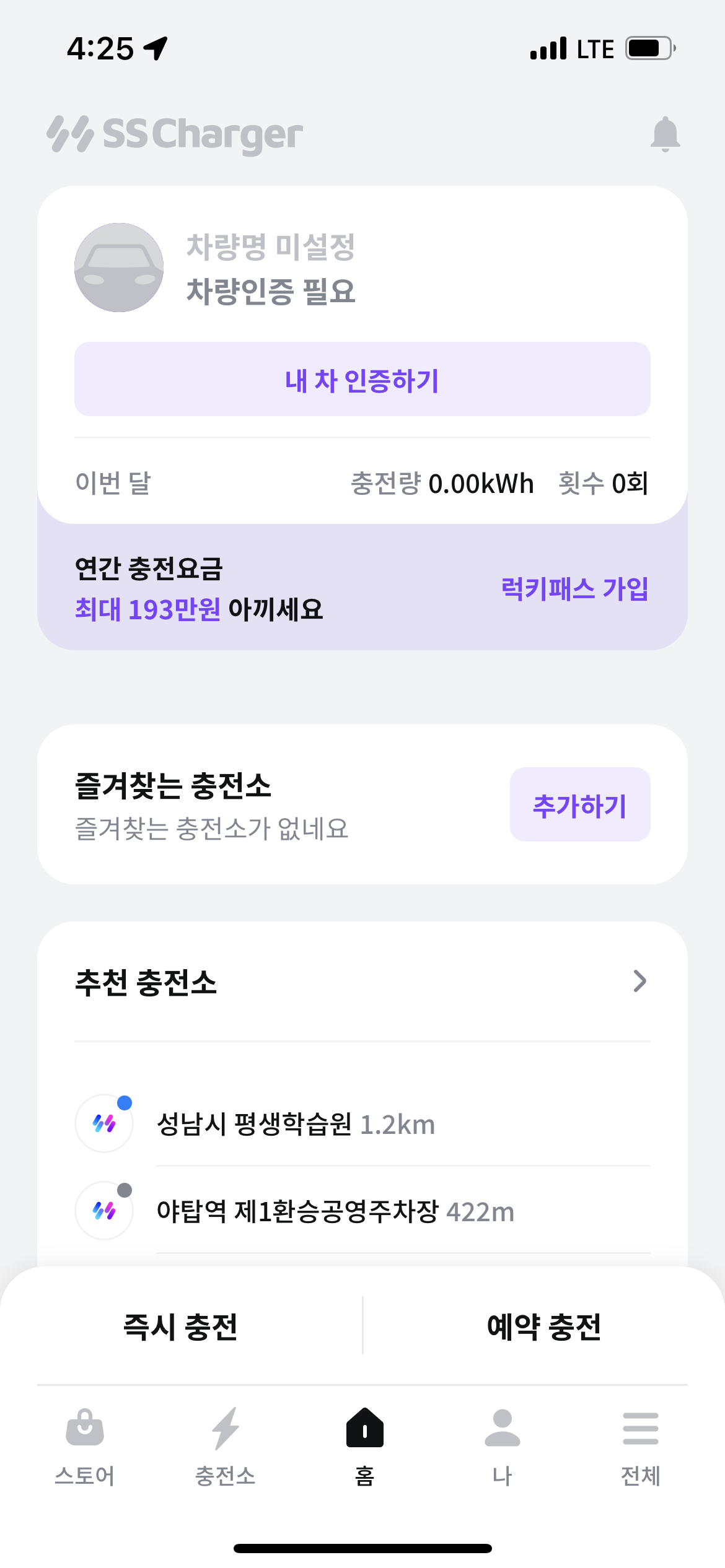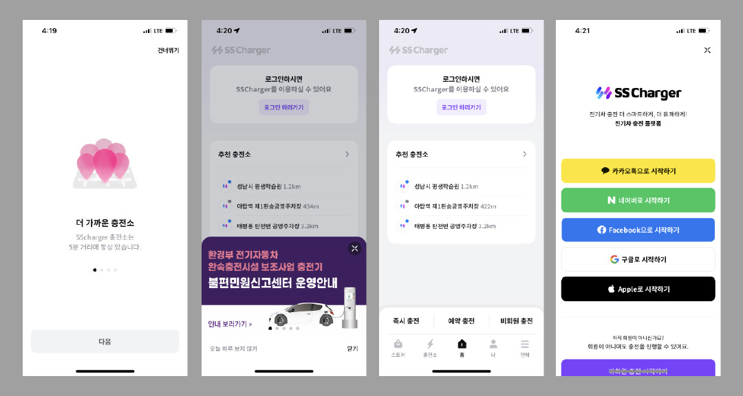 회원가입 전 홈화면이 먼저 보여지는데, 바로 회원가입으로 먼저 유도가 된다. 이 지점에서 충전소 지도를 먼저 보고 사용해보고 싶어하는 유저의 니즈가 많다고 생각한다. 위치기반 충전소 지도앱을 먼저 확인 후 앱이 괜찮다고 생각하면 홈 화면에서 회원가입으로 이어지는 사례가 더 많기 때문이다.