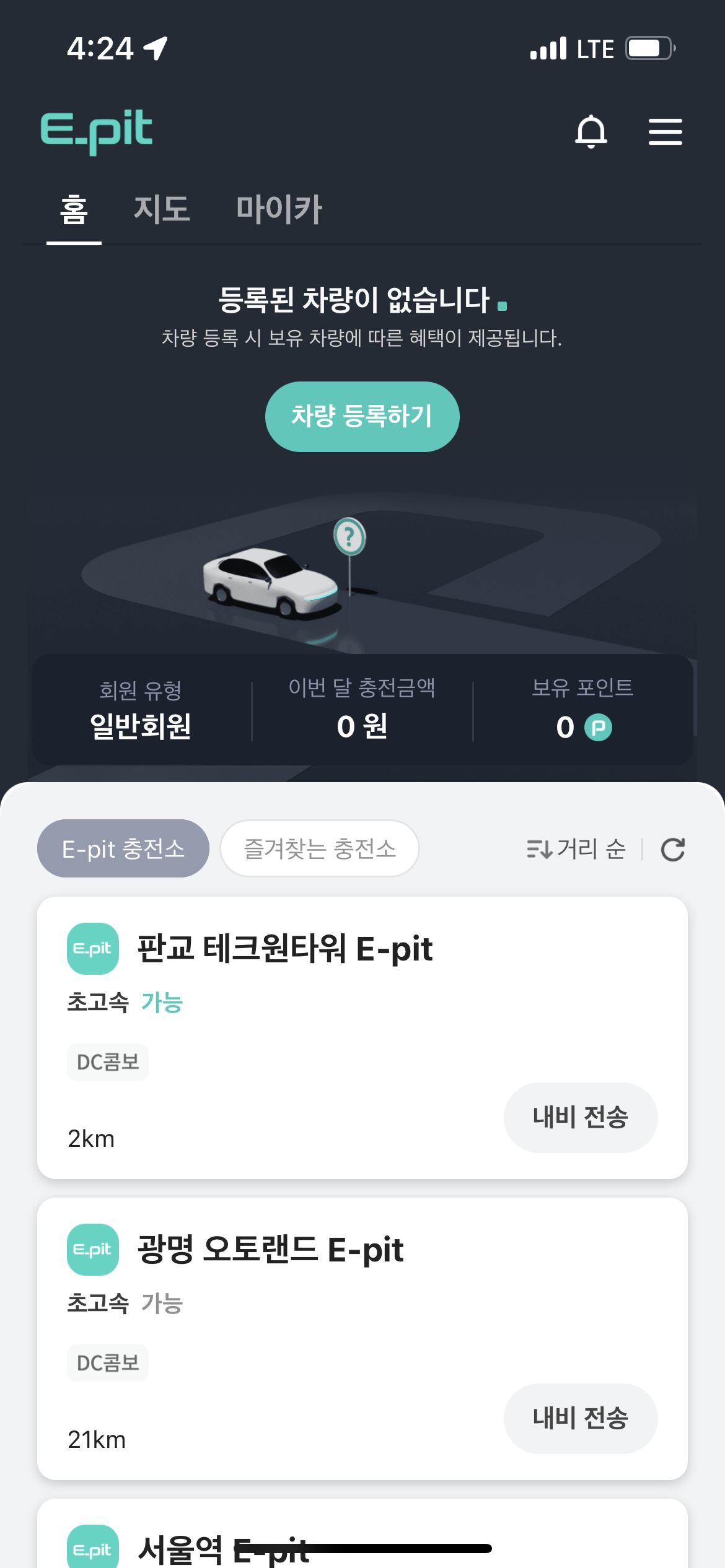 4. 이피트 충전소를 포함한 경로 찾기가 안됨