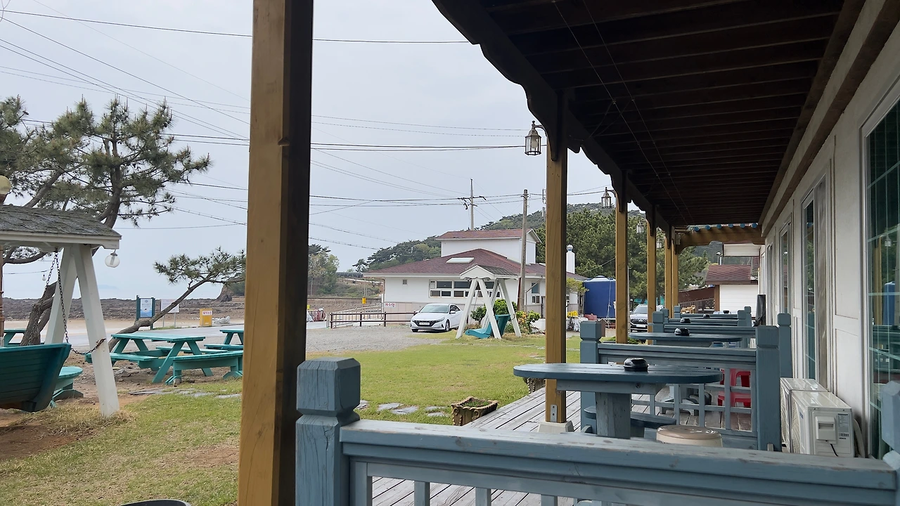 방포 해수욕장이라는 작은 해변에 도착했다. 숙소를 지나치는 바람에 해변에 잠깐 차를 대고 바다를 바라보았다. 그새 비는 그쳤고, 아저씨 한 두 사람이 바닷가를 거닐고 있었다. 주인아주머니의 안내로 숙소에 짐을 풀었다. 1층의 방은 작았지만 침대가 없어 깔끔했고, 테이블과 벤치가 놓인 작은 포치에는 재떨이용 뚝배기가 놓여 있었다. 허리와 목에 디스크의 기억을 안고 있는 나는 바닥에서 잠을 청하기 힘들다. 숙소를 급하게 정하느라 침대의 부재를 확인하지 못해 처음 방에 들어갔을 때에는 조금 당황스러웠다. 다행히 매트가 있어, 4개의 1인용 매트(군대 훈련소 매트 사이즈였다.)를 두 개씩 쌓아 그나마 잘 만한 침대를 만들었다. 방 앞 해송 사이로 바람과 함께 파도소리가 불어왔다.