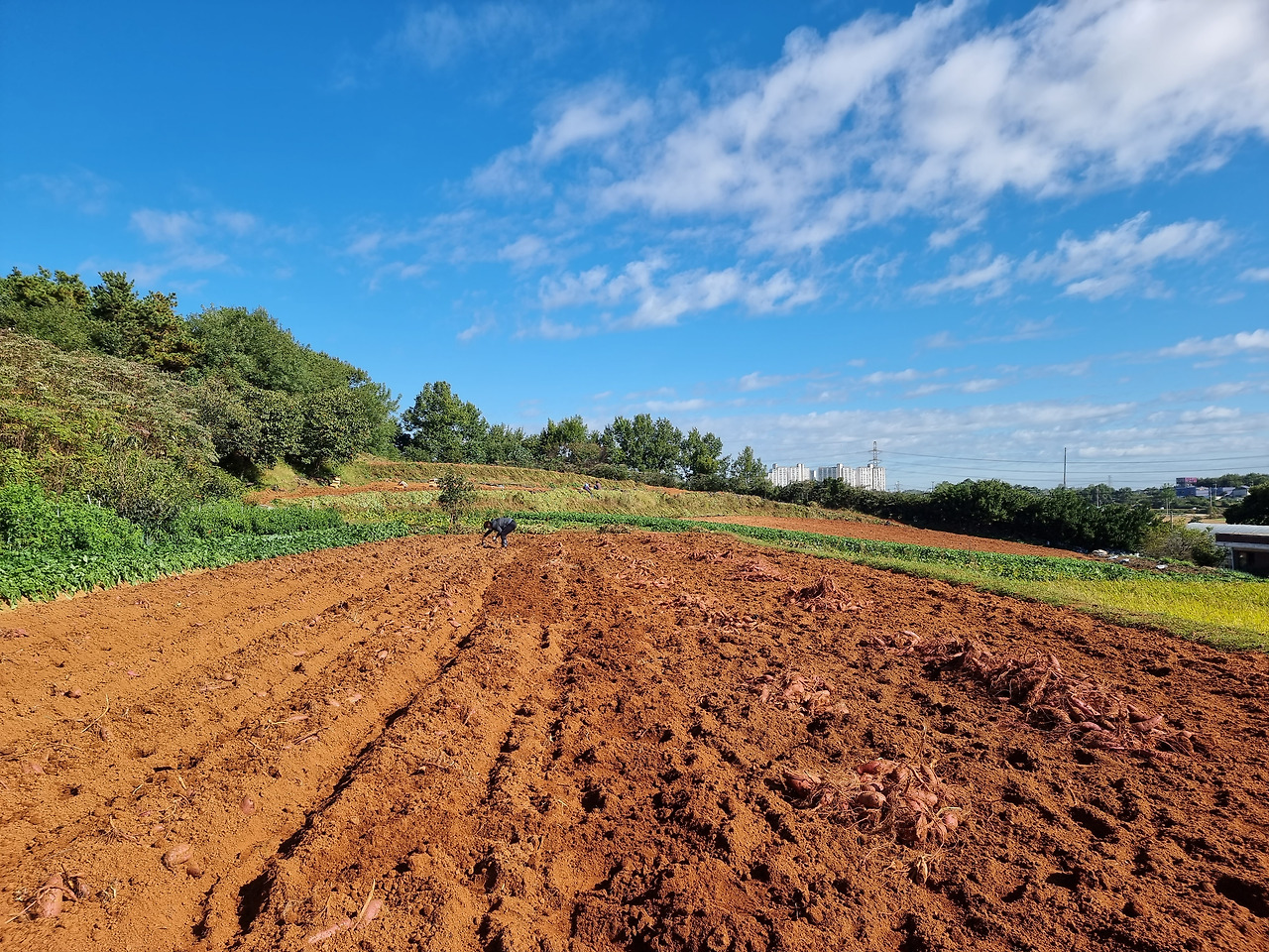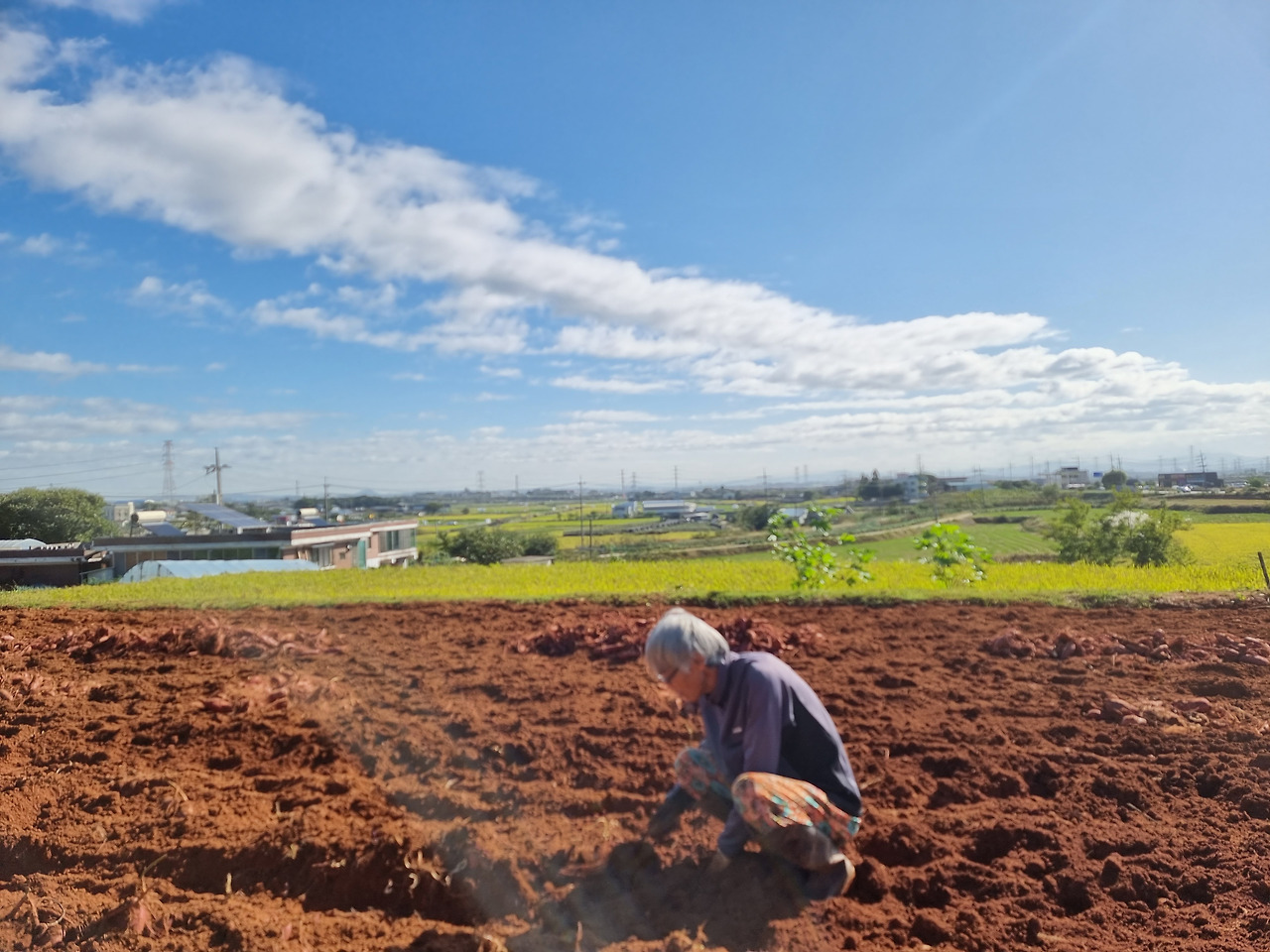 고구마 수확을 아직 못했다고 했다. 오기로 한 일군들이 펑크를 냈덴다. 며칠 동안 비가 내려 날이 갠 오늘이나 내일 안 하면 고구마 다 썩는단다. 도와달라 요청이 온 거다. 나도 바쁜 몸인데....