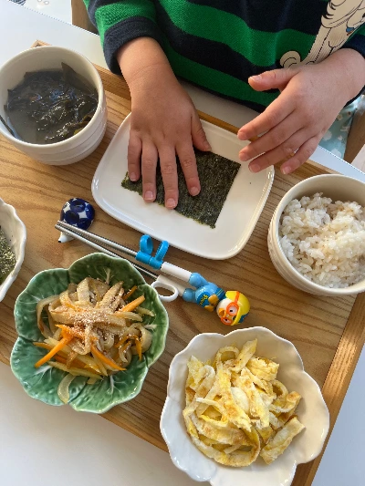 집에서 쉬는 덕에 아침에 먹고 갈 미역국은 점심에 먹고, 아이가 먹고 싶어 하는 김밥을 준비해 주었다. 한창 무엇을 만들고 요리하고 먹고 싶어 하는 시기라 혼자 김밥 만드는 게 좋다고 한다. 고기는 저녁때 쓸 거리 밖에 없었지만 다행히 파리에서 사 온 부산어묵 1장이 남아 야채와 볶았다.