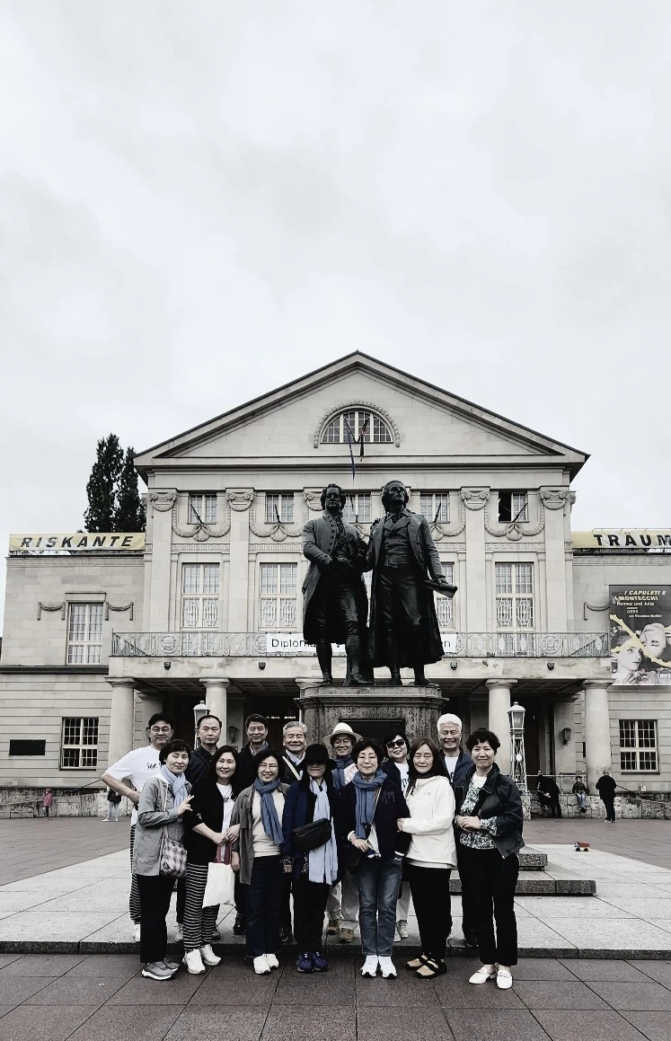 괴테와 쉴러 동상 앞에서