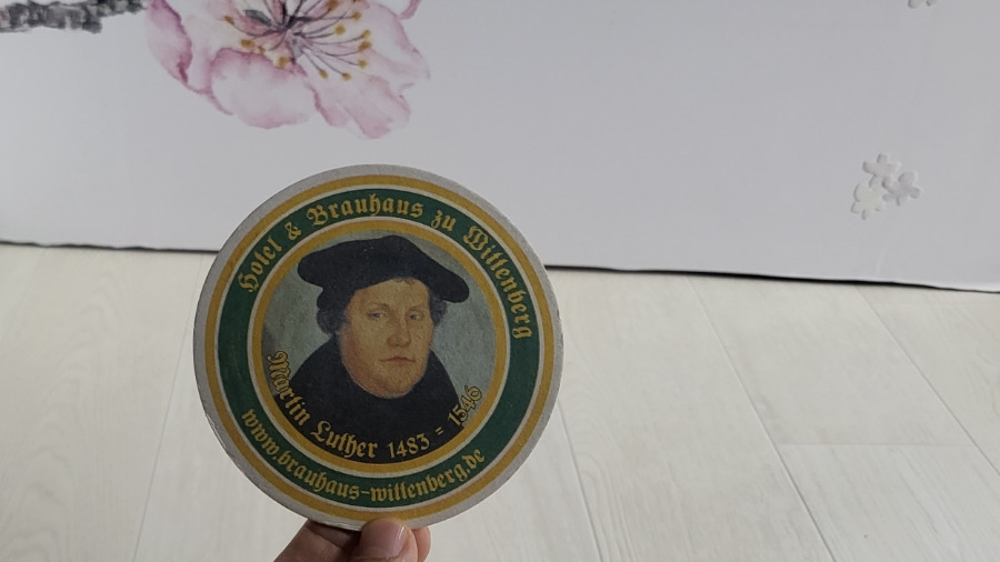 식당의 컵받침대_루터가 새겨져 있다.