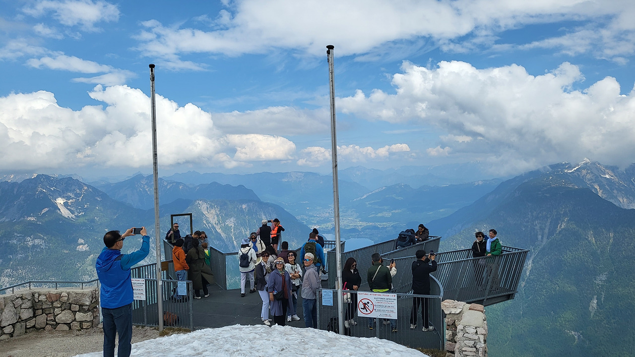 스파이럴 전망대에서 내려와서 조금 더 걸어가면 파이브핑거스 전망대가 나타난다. 탄성이 절로 나오는 최고의 전망이다. 하늘과 구름과 산과 호수. 할슈타트 마을까지 한 눈으로 감상할 수 있는 엄청난 전망을 마주하게 된다.