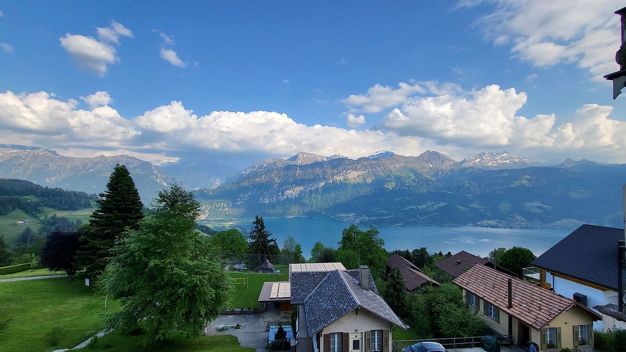 객실에 들어서서 창문을 여는 순간 탄성이 절로 나왔다. 알프스가 파노라마처럼 펼쳐졌다. 아이거, 묀히, 융프라우가 한 눈에 들어 왔다. 코발트색 툰호수는 마음을 잔잔하고 차분하게 만들었다. 동네는 고즈넉하고 나무들은 푸르름으로 안식을 주었다. 경이로운 풍경을 영상이나 사진으로 다 담을 수가 없는 것이 안타까웠다. 지금까지의 숙소 중에 최고였다.