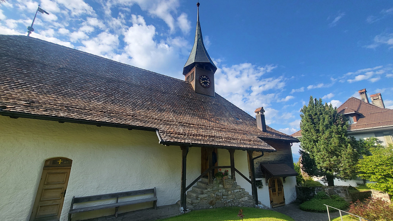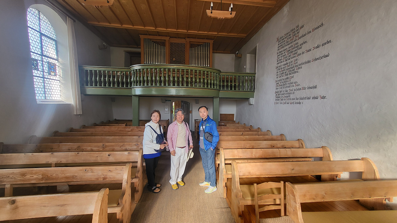 아침 식사를 하고 베아텐베르크 개혁교회에 다녀 왔다. 교회가는 길에 알프스를 배경으로 환상적인 사진을 찍었다. 목조건물로 된 교회는 중세적 개혁교회의 모습이다. 정원을 아름답게 가꾸어 놓았고, 교회 입구에 예쁜 화분 몇 개가 놓여 있었다. 벽보에는 소식을 알리는 포스트도 많이 붙어 있었다.