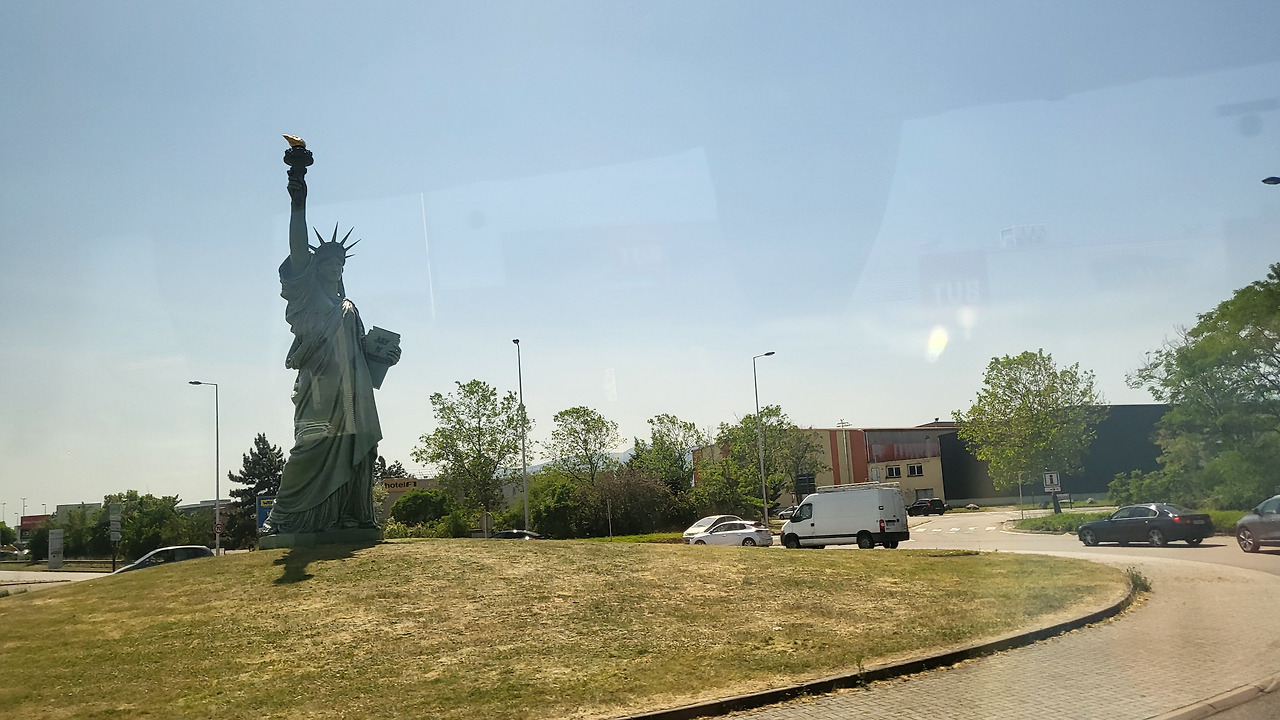 스트라스부르를 향해 갈때 교차로에서 자유의 여신상을 볼 수 있었다. 버스 안에서 촬영했다.