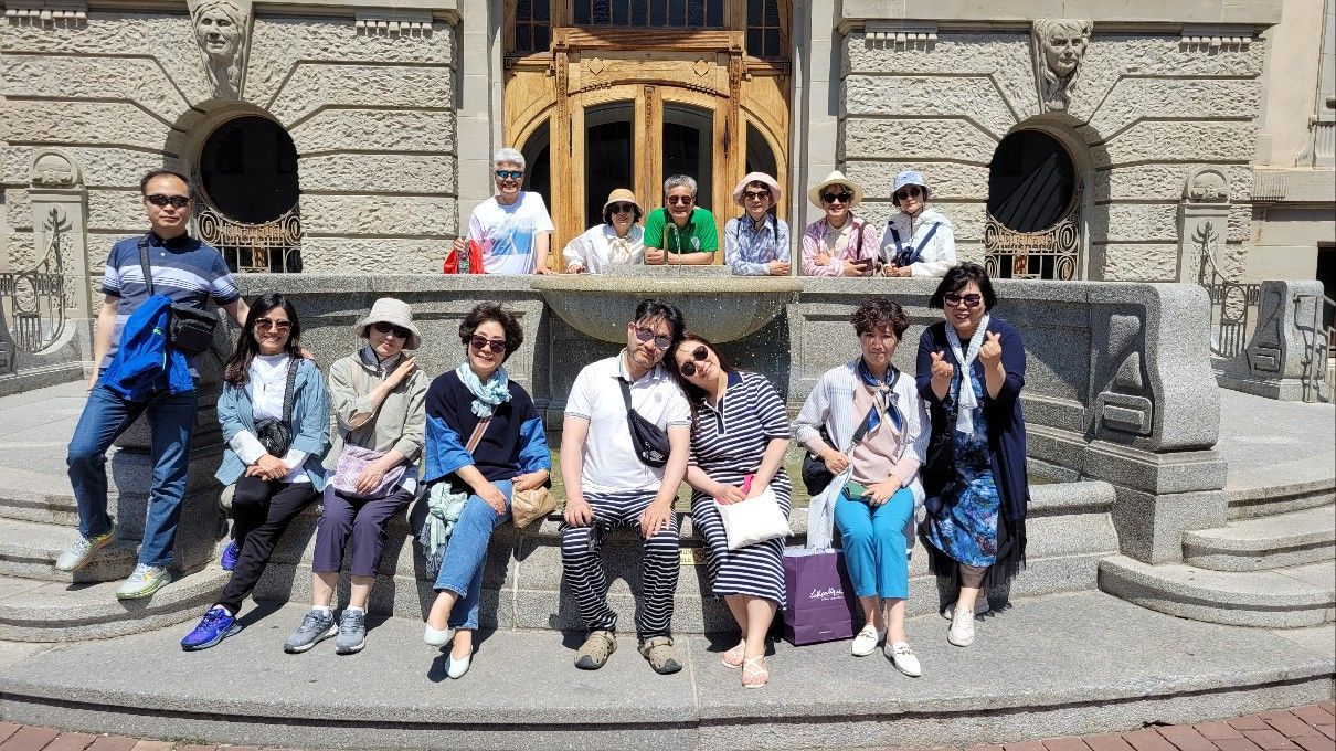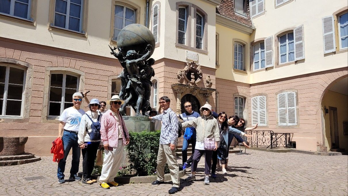 생 마르텡 대성당을 둘러보고 스트라스부르로 가기 위해 버스주차장으로 향했다. 콜마르 관광안내소를 지나가게 되어 단체사진을 찍었다. 날씨가 무척이나 맑고 화창했다. 하늘이 짙푸르고 구름 한 점 없으니 마치 툰호수를 보는 것 같았다.