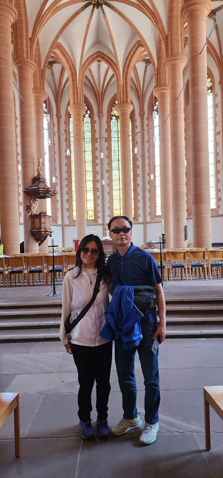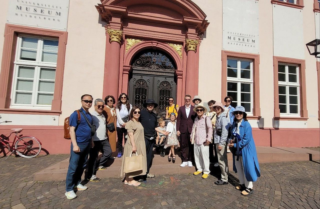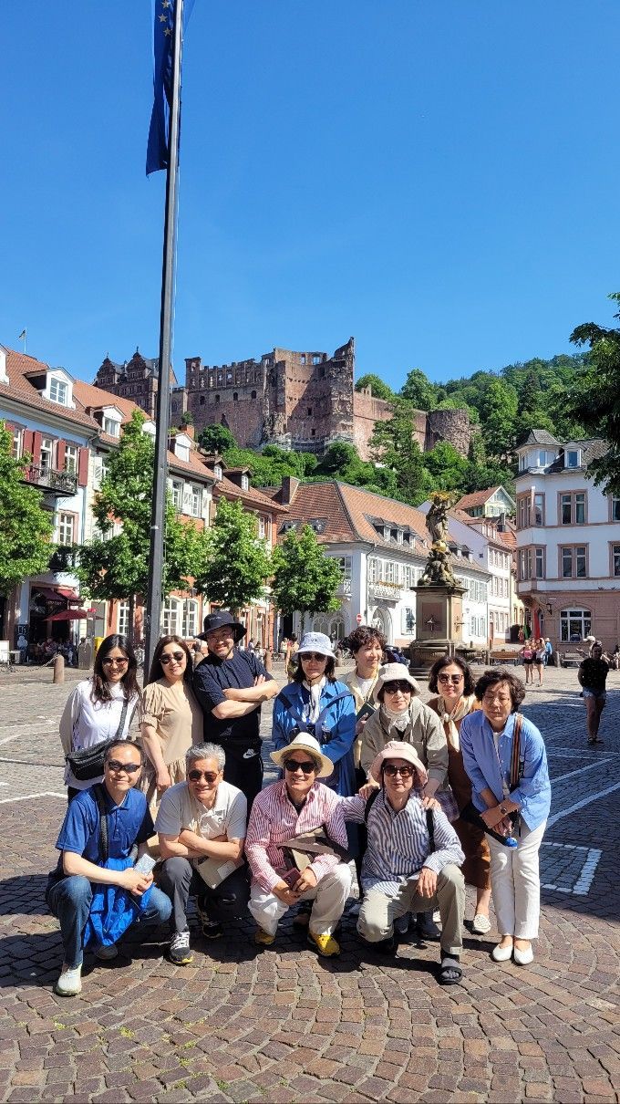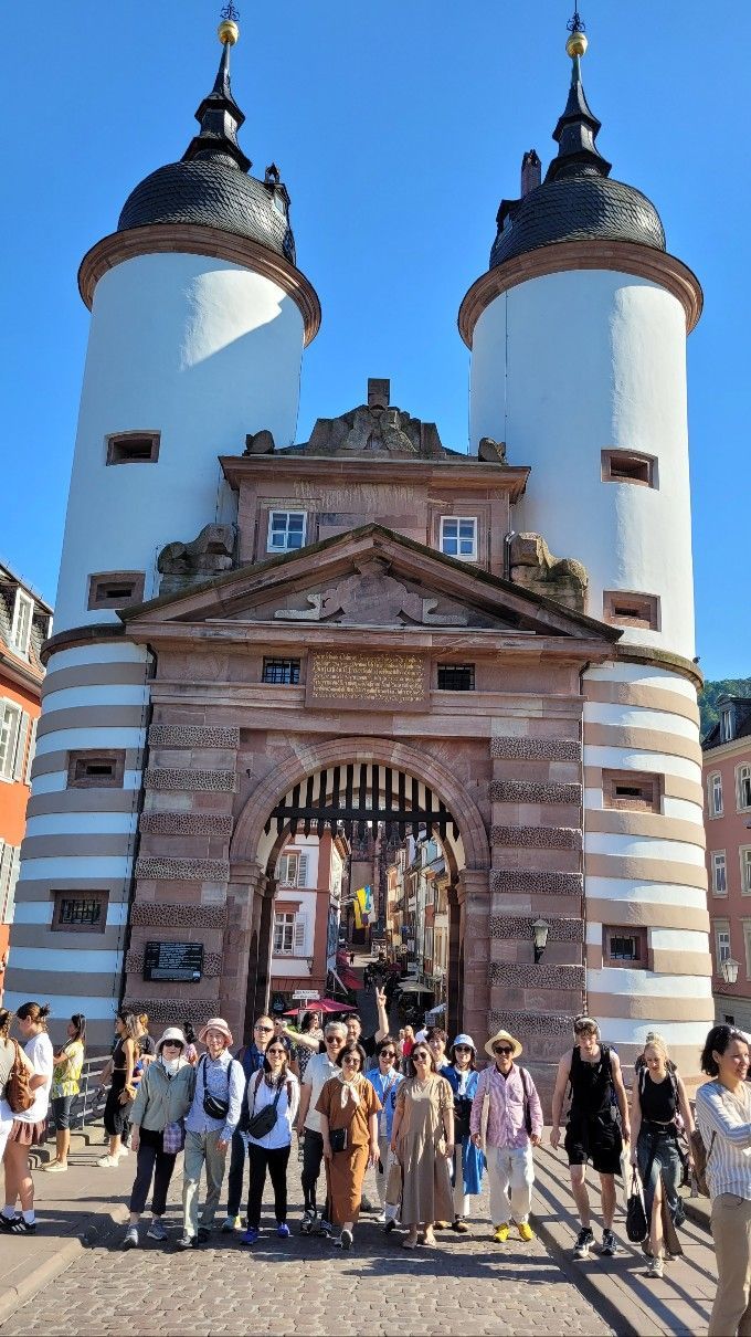 하이델베르크 대학교에 도착했더니 보라색 양복을 깔끔하게 차려입은 남자와 아이는 걸리고, 아기는 유모차에 태운 부인을 만났다. 박사학위식에 참석하기 위해 온 것이라고 했다. 전공를 물었더니 신학박사라고 했다. 우리는 그리스도인이며 하이델베르크 대학교에 관광차 방문했다고 소개하면서 축하를 전하며 박수쳐 주었다. 그래서 함께 기념촬영도 했다. 신학박사 학위식에 방문하게 되다니 신기하고 놀라울 따름이었다.
