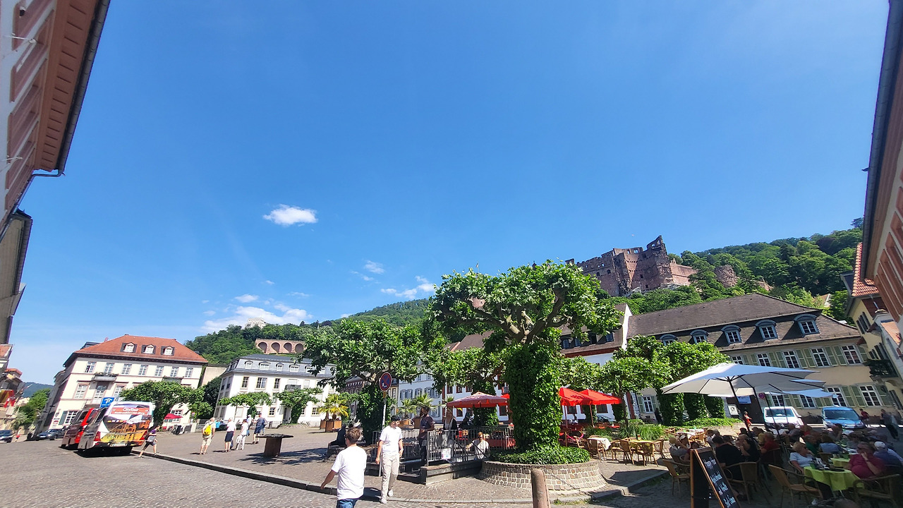 비스마르크 광장은 앞으로는 네카강이 유유히 흐르고, 뒤로는 하이델베르크 성이 보이고, 구시가지로 연결된다.