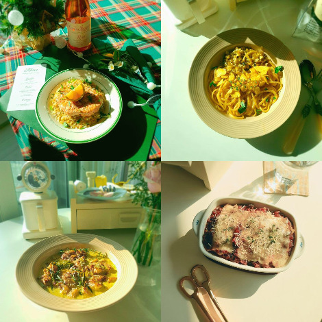 코스요리도 해보고 싶다. 내가 위가 워낙 작아서 한 끼에 많이 먹지도 못하지만. 적게 적게 만들어 코스처럼 만들어 먹고 싶다. 근데 내가 해서 내가 먹어야 하는데 가능할까..? 오브되브르를 먹으며 두 번째 끼를 오븐에 넣으면 가능할지도... 디저트는 전날 만들어 냉장고에 넣어두는 쪽으로 만든다면...