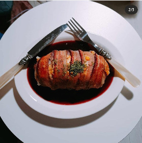 - 오븐에 구운 베이컨+감자 묶음에 소스를 붓는 방식이었다.