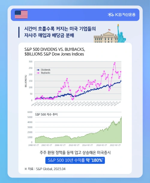 물론 주주 환원이 증시를 끌어올린 유일한 요소는 아닙니다. 하지만 선진화된 주주환원 정책과 기업들의 행동은 미국증시를 더 빛나게 하는 포인트로 자리 잡고 있습니다.