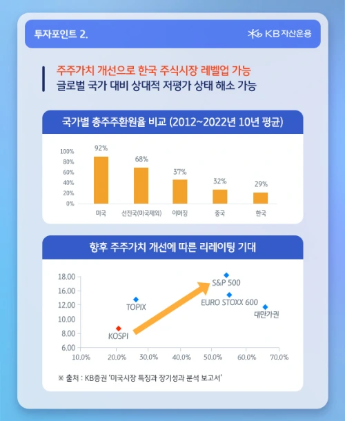 국가, 그리고 기업 전반의 주주가치 개선 노력으로 한국 주식시장 전체가 레벨업을 할 수 있다는 점도 중요한 포인트 중 하나입니다.