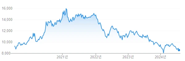높은 성장세는 바이두, 텐센트 등을 필두로 한 중국의 대형 테크 플랫폼 기업들로 전이되었고, 중국 핵심 IT 기업들에 투자하는 KWEB ETF는 2015년부터 2021년까지 최대 240%에 달하는 상승률을 보여주었습니다.