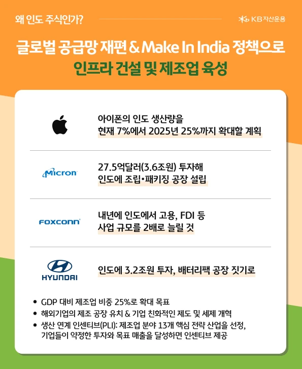 서로 간의 이해관계가 맞아서일까요? 이미 폭스콘, 현대차, 애플 등 수많은 기업들이 인도에 대한 투자를 확대하는 중입니다. 그리고 이는 인도의 성장에 더욱 박차를 가하겠죠.