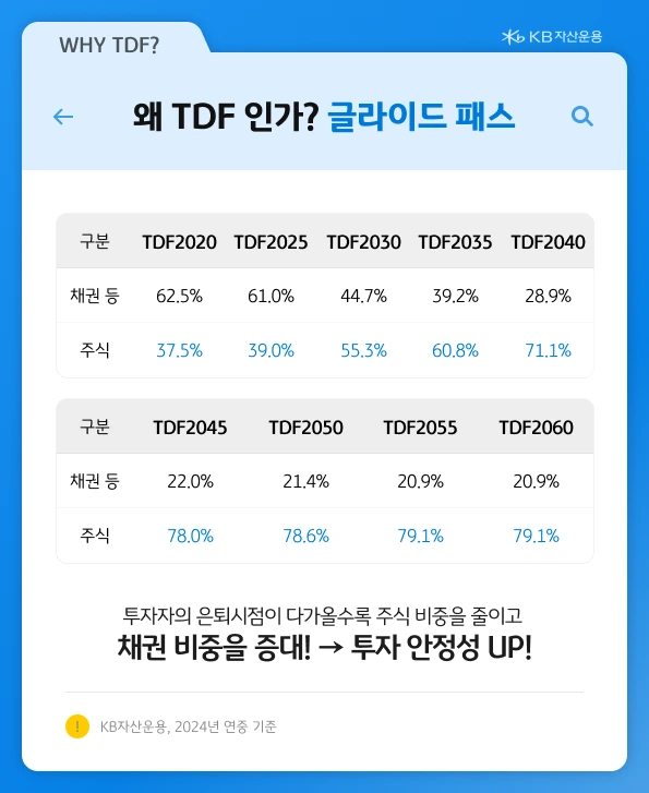 수십 년을 운용해야 하는 연금투자에 적합한 TDF. 그렇다면 KB자산운용에는 어떤 TDF들이 존재할까요?