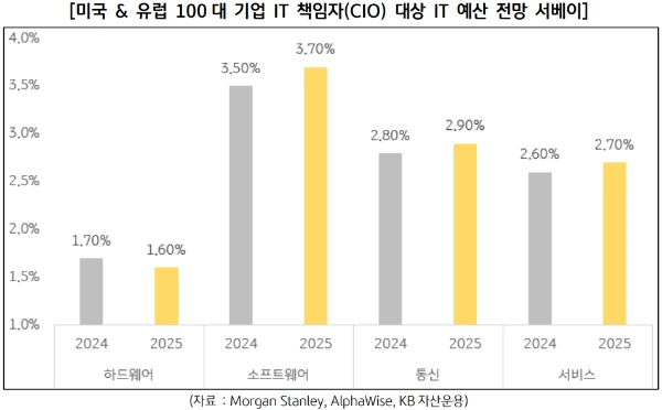 생성형 AI의 등장 이후 AI를 활용한 업무 생산성 향상이 가능해지며 기업들의 소프트웨어 투자 수요가 다시 증가하고 있습니다.