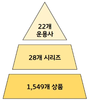 현재(24.11.01) 기준으로 클래스까지 포함해서 따지면 우리나라에서 가입 가능한 TDF의 종류는 22개 운용사의 28개 시리즈, 총 1,549개에 달합니다.