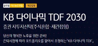 'KB 다이나믹 TDF 2030 증권 자투자신탁(주식혼합-재간접형)'의 경우 2030이라는 숫자가 붙어 있습니다. TDF에 붙어있는 모든 숫자는 연도를 의미하고, 그 연도는 투자자가 목표로 하는 생애주기 투자의 종료시점을 의미합니다.