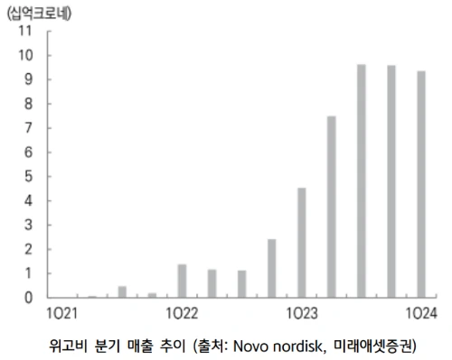 21년 출시된 위고비는 가파른 성장곡선을 그렸고, 일론 머스크가 체중 감량의 비결로 위고비를 언급하며 인기가 폭발적으로 증가, 품귀현상이 일어나게 됩니다.