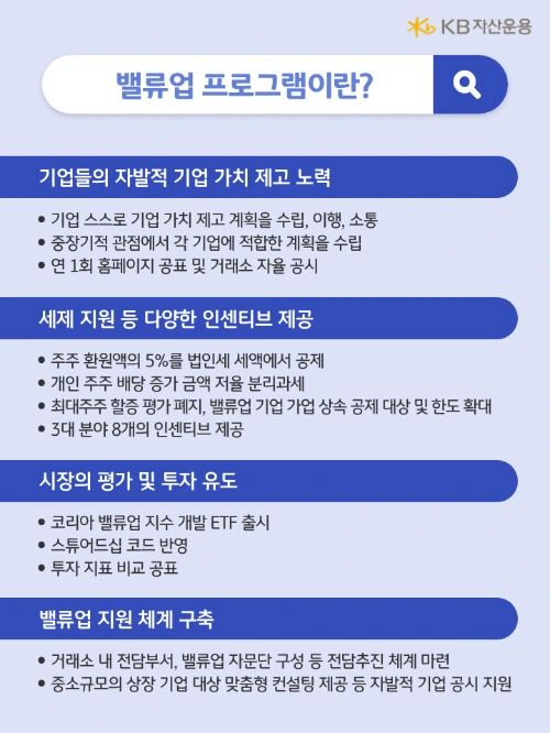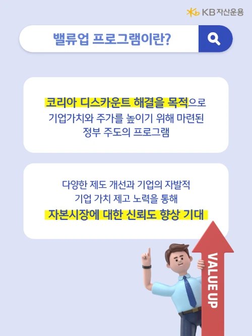 밸류업 프로그램에 대해 알아보았으니, 이제 KB자산운용에서 출시한 관련 상품들에 대해서도 확인하면 좋겠죠?