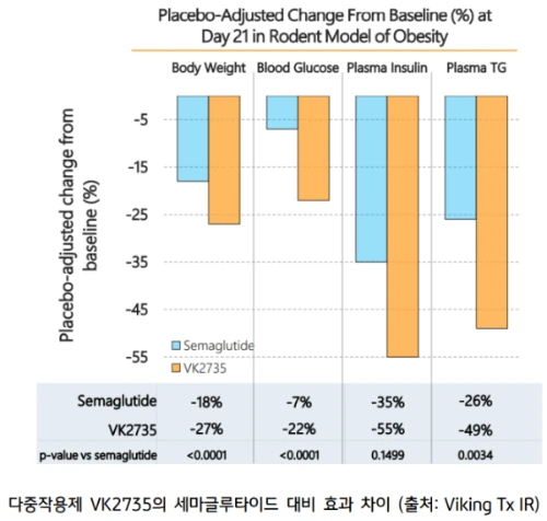 앞선 포스팅에서 언급한 일라이 릴리의 젭바운드(Zepbound), 레타트루타이드(Retatrutide)는 물론, 베링거잉겔하임/질랜드파마의 서보두타이드(Survodutide), 바이킹테라퓨틱스의 VK2735, 한미약품의 Efocipegtrutide 등이 대표적인 예시입니다.