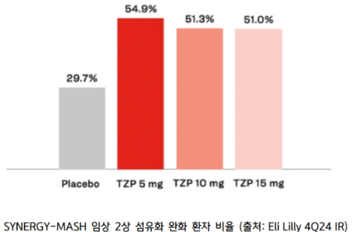 FDA가 제시한 두 가지 endpoint를 모두 만족하며 일라이 릴리의 MASH 적응증 확장 계획은 순항 중입니다.