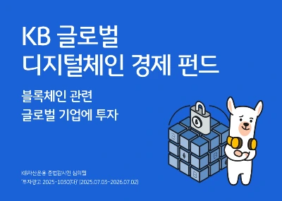 ※ KB글로벌 디지털체인경제 증권투자신탁(주식): 2등급(높은위험), 온라인일반형C-E클래스 기준 합성 총보수비용 연1.430%(판매사 0.5%, 집합투자업자 0.85%, 신탁업자 0.06%, 사무관리회사0.015%, 기타비용 0.005%), 환매수수료 없음, 17시 이전(경과 후)환매 청구 시 환매청구일로부터 4(5)영업일 기준가격으로 제 8(9)영업일에 환매대금 지급